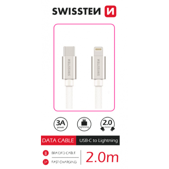 SWISSTEN DATOVÝ KABEL TEXTILE USB-C / LIGHTNING 2,0 M STŘÍBRNÝ