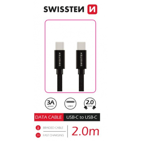 SWISSTEN DATOVÝ KABEL TEXTILE USB-C / USB-C 2,0 M ČERNÝ