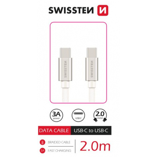 SWISSTEN DATOVÝ KABEL TEXTILE USB-C / USB-C 2,0 M STŘÍBRNÝ