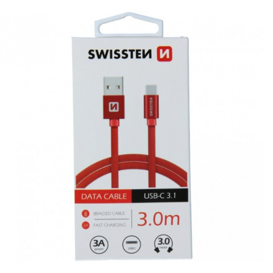 SWISSTEN DATOVÝ KABEL TEXTILE USB / USB-C 3,0 M ČERVENÝ