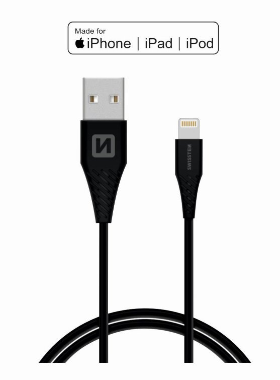SWISSTEN DATOVÝ KABEL TPE USB / LIGHTNING MFi 1,2 M ČERNÝ