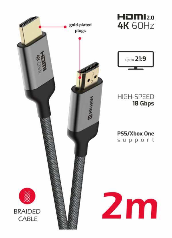Hledáte kvalitní pletený HDMI kabel, který přenese obraz se zvukem z Vašeho zařízení a v 4K kvalitě s obnovovací frekvencí 60Hz? Našli jste správně! Swissten HDMI kabel je skvělou variantou pro přenos jakékoliv obrazu i zvuku pomocí rozhraní HDMI 2.0 a zároveň 4 audio stop a 32 zvukových kanálů. Díky několika chytrým funkcím, kterými kabel disponuje, splní požadavky prakticky každého zákazníka. Jedná se o funkce VRR, HDR, QMS a další.