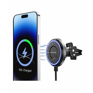 Díky silným magnetům a podpoře MagSafe pevně drží iPhone nebo jiné kompatibilní zařízení a zároveň ho bezdrátově nabíjí výkonem až 15 W (pro iPhone 7,5 W).