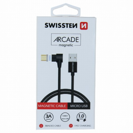SWISSTEN MAGNETICKÝ TEXTILNÍ DATOVÝ KABEL ARCADE USB / MICRO USB 1,2 M ČERNÝ