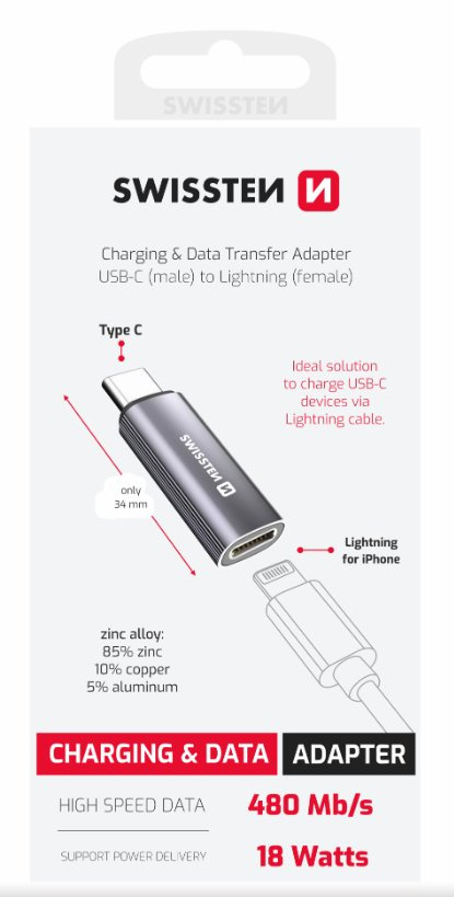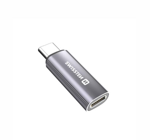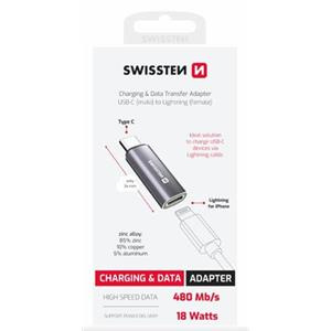 SWISSTEN NABÍJECÍ ADAPTÉR TEXTILE USB-C (samec) / LIGHTNING (samice) STŘÍBRNÝ