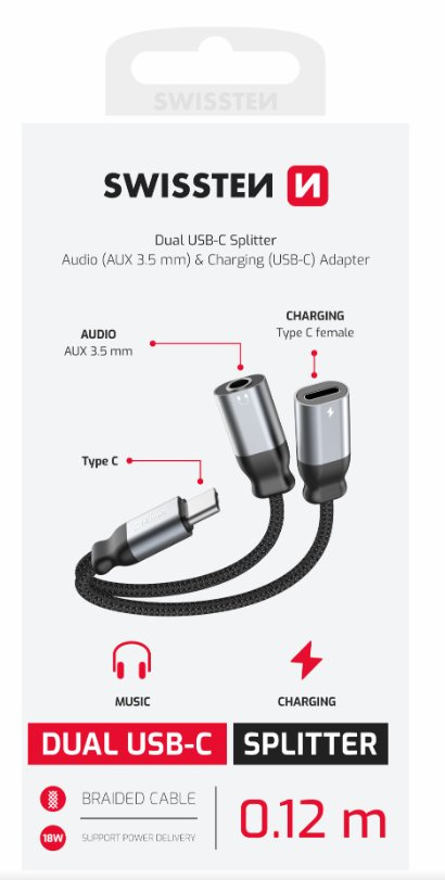 Hledáte spolehlivý adaptér, který vám umožní zároveň nabíjet a poslouchat hudbu? Našli jste správně! Nabíjecí audio adaptér SWISSTEN Textile USB-C (samec) / USB-C (samice) a 3,5mm AUX o délce 0,12 m je ideálním řešením. Tento adaptér vám umožní připojit sluchátka nebo reproduktory s 3,5mm jackem k vašemu zařízení s USB-C konektorem, a zároveň zachovat možnost nabíjení přes USB-C port.