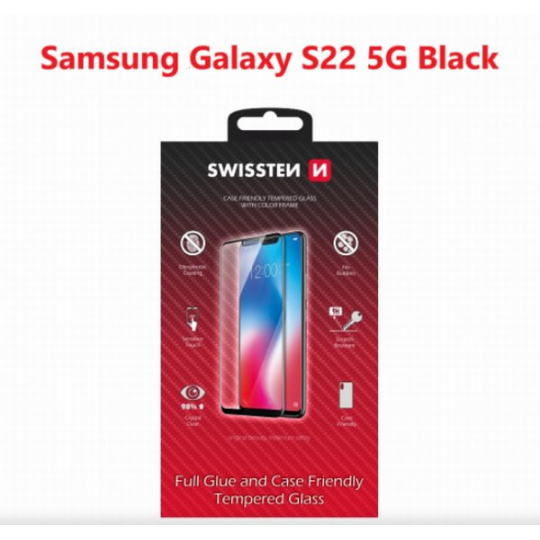 SWISSTEN SKLO FULL GLUE, COLOR FRAME, CASE FRIENDLY SAMSUNG S901B GALAXY S22 5G ČERNÉ