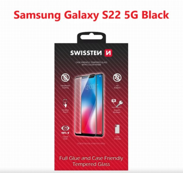 SWISSTEN SKLO FULL GLUE, COLOR FRAME, CASE FRIENDLY SAMSUNG S901B GALAXY S22 5G ČERNÉ