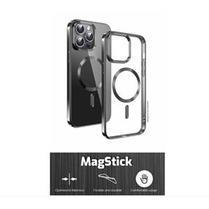Luxusní čiré pouzdro SWISSTEN MagStick Metallic s elegantním černým rámečkem a metalickými doplňky. Vhodné pro dobíjení MagSafe. Baleno v blistru SWISSTEN