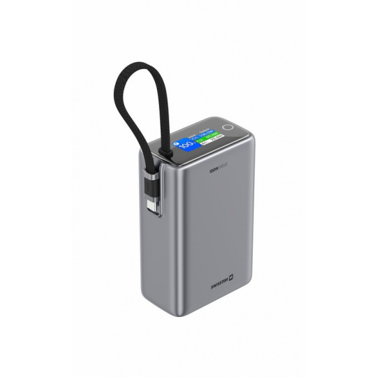 SWISSTEN POWER BANK CESTOVNÍ 25000 mAh (96.25Wh) 100W S INTEGROVANÝM KABELEM USB-C ŠEDÁ