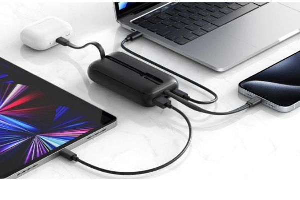 Vestavěné kabely USB-C a Lightning poskytují maximální flexibilitu a pohodlí, což umožňuje nabíjet zařízení se systémem Android i iOS bez nutnosti nosit další příslušenství. K dispozici je také port USB-A s výkonem až 22,5 W pro nabíjení dalších zařízení.