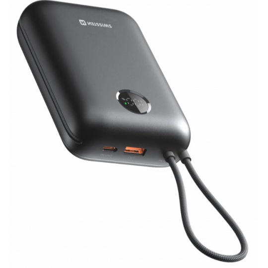 SWISSTEN POWER BANK 20000 mAh 45W S INTEGROVANÝM KABELEM USB-C VESMÍRNĚ STŘÍBRNÁ