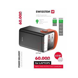 Elegantní powerbanka SWISSTEN s kapacitou 60.000mAh (222Wh) disponuje vysokým výstupním výkonem 65W, rychlým dobíjením a pro zvýšení bezpečnosti je vyrobena z nehořlavého materiálu. Baleno v krabičce SWISSTEN