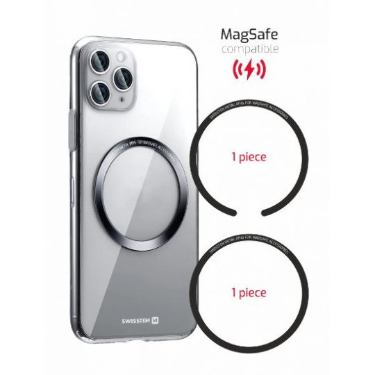 Set nalepovacích kovových kroužků pro kompatibilitu nabíjení s Magsafe. Baleno v blistru SWISSTEN