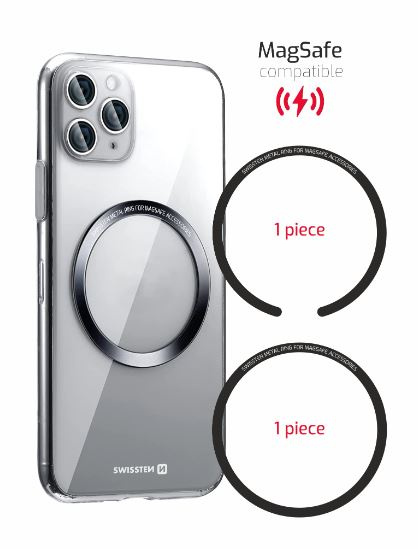Set nalepovacích kovových kroužků pro kompatibilitu nabíjení s Magsafe. Baleno v blistru SWISSTEN