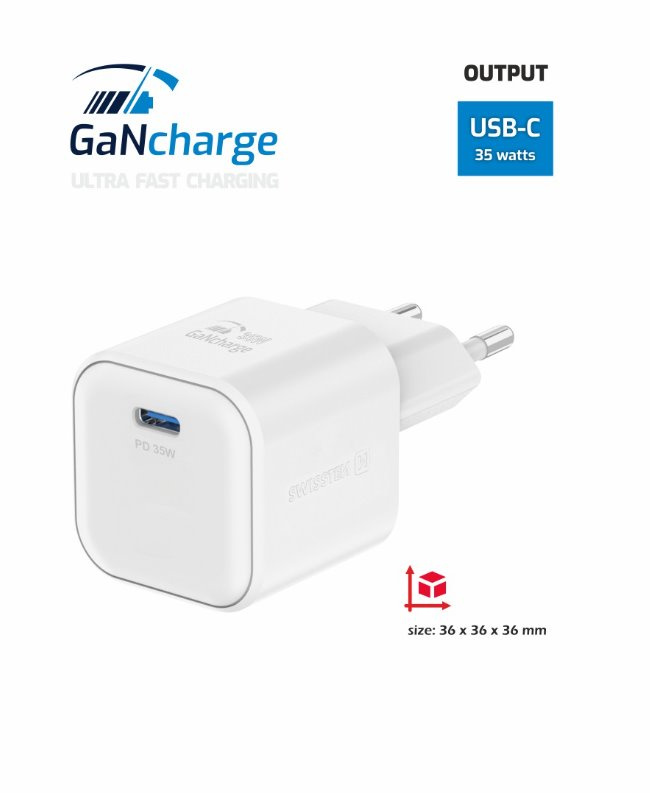 SWISSTEN SÍŤOVÝ ADAPTÉR GaN 1x USB-C 35W POWER DELIVERY BÍLÝ
