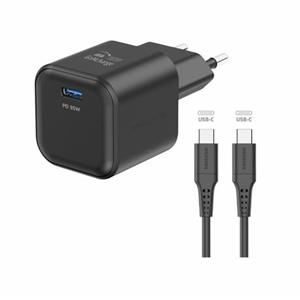 SWISSTEN SÍŤOVÝ ADAPTÉR GaN 1x USB-C 35W POWER DELIVERY ČERNÝ + DATOVÝ KABEL USB-C/USB-C 1,2 M ČERNÝ