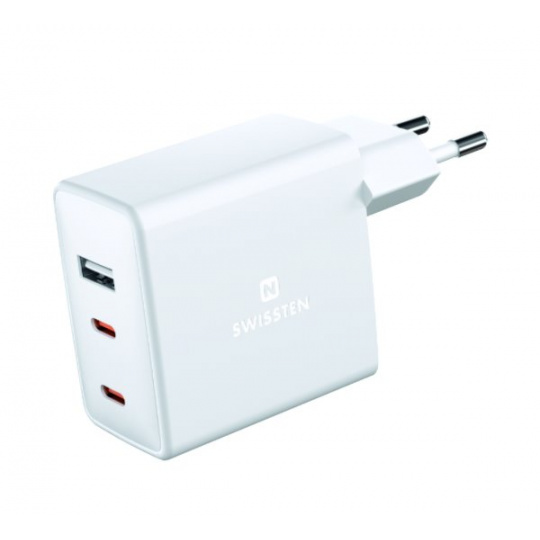 SWISSTEN SÍŤOVÝ ADAPTÉR GaN 2x USB-C + 1xUSB 70W