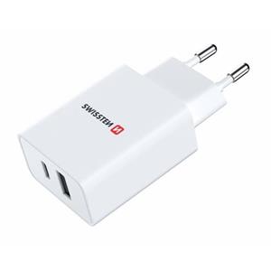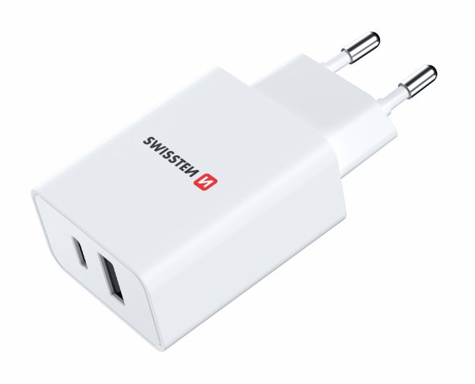 SWISSTEN SÍŤOVÝ ADAPTÉR POWER DELIVERY 30W 1x USB-C + 1x USB BÍLÝ
