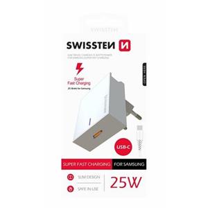 SWISSTEN SÍŤOVÝ ADAPTÉR PRO SAMSUNG SUPER FAST CHARGING 25W + DATOVÝ KABEL USB-C/USB-C 1,2 M BÍLÝ