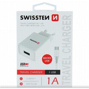 SWISSTEN SÍŤOVÝ ADAPTÉR SMART IC 1x USB 1A POWER + DATOVÝ KABEL USB / MICRO USB 1,2 M BÍLÝ