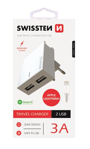 SWISSTEN SÍŤOVÝ ADAPTÉR SMART IC, CE 2x USB 3 A POWER BÍLÝ + DATOVÝ KABEL SWISSTEN USB / LIGHTNING 1,2 M BÍLÝ