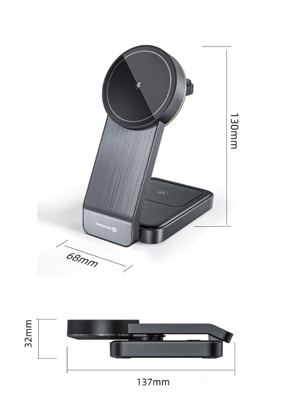 Znervózňuje vás velké množství kabelů, kdy se u každého zařízení ještě mění koncovky? S tím už je konec. S naším Swissten stojánkem se tohoto stresu zbavíte a vaše pracoviště, noční stolek nebo jakékoliv prostředí, kam ho umístíte, bude mnohem přehlednější. Díky stojánku bezproblémově nabijete jakýkoliv telefon, hodinky a sluchátka s podporou bezdrátového nabíjení a to celkovým výkonem 25 Wattů.