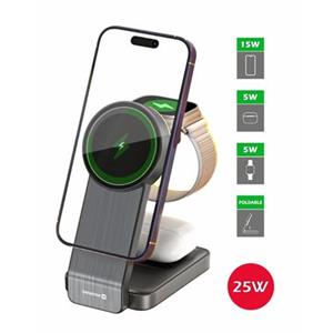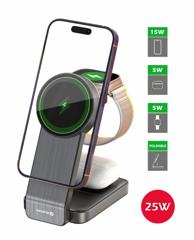 SWISSTEN SKLÁDACÍ BEZDRÁTOVÁ NABÍJEČKA MagFold 3v1 25W ČERNÁ (kompatibilní s MagSafe)