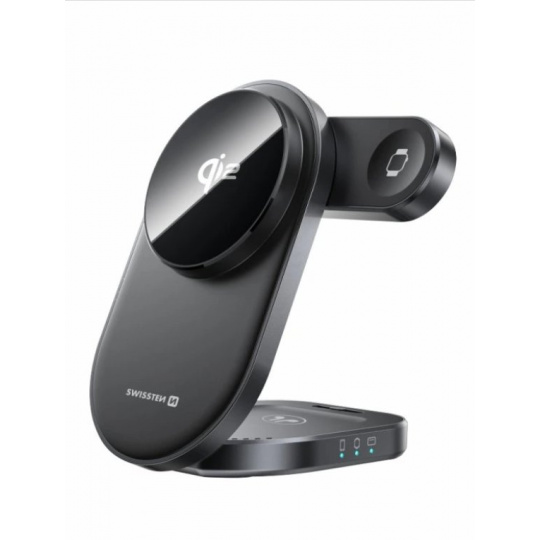 SWISSTEN SKLÁDACÍ BEZDRÁTOVÁ Qi2 NABÍJEČKA MagBase 3v1 ČERNÁ (kompatibilní s MagSafe)