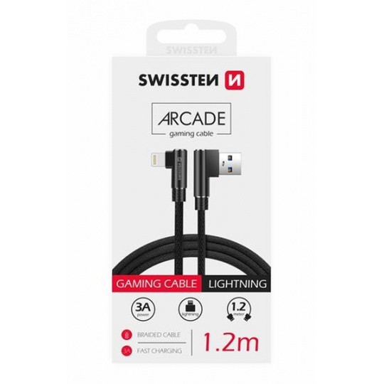 SWISSTEN TEXTILNÍ DATOVÝ KABEL ARCADE USB / LIGHTNING 1,2 M ČERNÝ