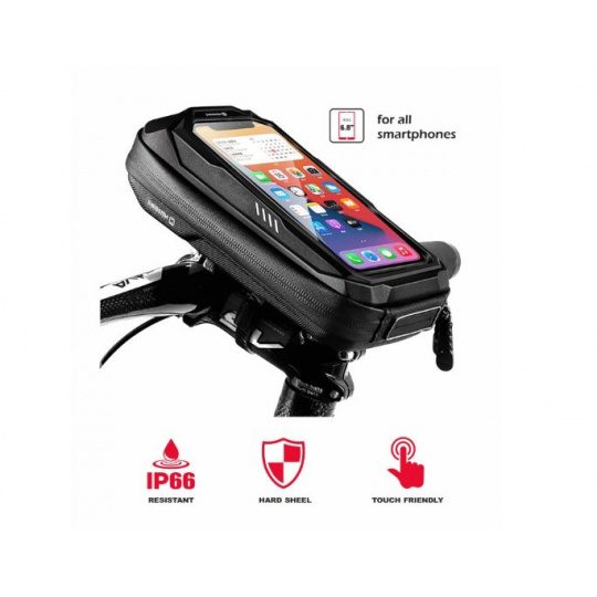 Voděodolné pouzdro na kolo pro Váš smartphone. Je vybaveno vývodem pro sluchátka a průhlednou slídou. Baleno v blistru SWISSTEN.