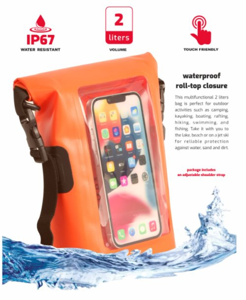 Oproti vodotěsnému pouzdru má tento bag s objemem 2l dostatek místa nejen pro smrtphone, ale i pro další cenné věci jako je třeba peněženka, doklady, klíče atd.