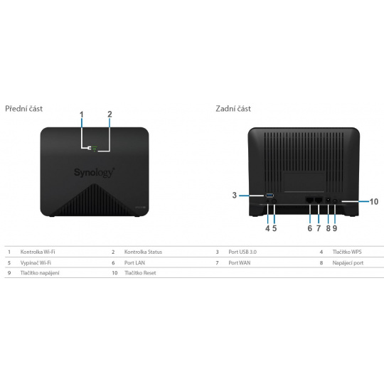 Inteligentní zařízení Synology Mesh Router MR2200ac kompletně pokryje signálem sítě Wi-Fi domov i kancelář. Zařízení MR2200ac, založené na technologiích Tri-Band a MU-MIMO, dokáže zajistit, že vaše zařízení budou vždy používat tu nejrychlejší šířku pásma zajišťující optimalizaci výkonu a budou se vždy spolehlivě připojovat bez jakékoliv prodlevy. Navíc můžete v rámci modulárního systému Mesh využívat ten nejlepší a bezproblémový roaming Wi-Fi s jediným názvem Wi-Fi. Funkce Safe Access zajišťuje jednoduchou správu rodičovské kontroly a současně brání všem pokusům o škodlivé proniknutí do sítě. Na zařízení Synology MR2200ac se vztahuje dvouletá omezená záruka společnosti Synology.