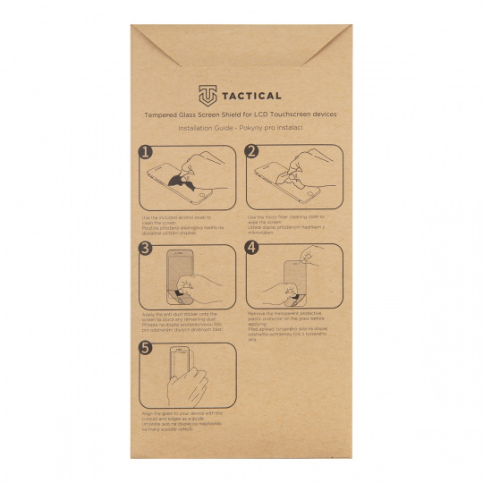 Popis produktu: Prémiové sklo Tactical Glass Shield 5D pro nejlepší ochranu displeje. Sklo chrání i zahnuté okraje displeje a lepí po celé své ploše. Díky tomu je přilnutí k displeji telefonu perfektní a bez bublin. Tloušťka skla je 0,33mm, na displeji je tak prakticky nerozeznatelné, ale díky tvrdosti 9H dostatečně pevné a odolné, aby ochránilo displej telefonu při nechtěném pádu, nebo lehčími škrábanci. Tvrdost skla 9H označuje Mohova stupnice minerální tvrdosti. Pohybuje se od 1 do 10, kde 10 označuje tvrdost diamantu. Stupnice je reprezentována pouze čísly bez přípony "H". Přípona H znamená tvrdost graffitu. H tedy znamená, že ochranné sklo je tvrdší než tento druh grafitu. Sklo je navíc pokryto z výroby oleofobní úpravou, která zabraňuje ulpívání otisků prstů, velmi snadno se čistí a spolehlivě odpuzuje vodu. Po instalaci skla nedochází ke zhoršení dotykových vlastností displeje ani ke zkreslení barevného podání displeje. Součástí balení je alkoholový ubrousek pro vyčistění a odmaštění displeje, hadřík z mikrovlákna pro perfektní vyleštění před instalací a i následně při používání telefonu s již nalepeným sklem. NEODOLATELNĚ ODOLNÝ U nás v Tactical dbáme na to, aby věci něco vydržely a za kvalitou svých výrobků si stojíme! Proto jsme v rámci nadstandartní péče Tactical schopni na tento produkt nabídnout DOŽIVOTNÍ ZÁRUKU. BE ECO My v Tactical máme rádi přírodu. Všechny naše produkty jsou balené do ECO krabiček z recyklovaného papíru tak, aby co nejméně zatěžovaly životní prostředí. Myslete takticky! Vlastnosti: - zahnuté okraje skla kryjí celý displej - sklo lepí po celé ploše - vyrobené na míru konkrétního modelu telefonu - vysoká odolnost proti poškrábání - tloušťka skla pouze 0,33mm - tvrdost skla je 9H - oleofobní úprava zabraňující zanechávání otisků prstů a pro snadné čištění - perfektní optické vlastnosti - nezkresluje obraz - neovlivňuje citlivost displeje na dotyk - vše potřebné k instalaci v balení - zakryje škrábance na displeji, telefon je pak zase jako nový - ekologické balení z recyklovaného papíru - doživotní záruka Obsah balení - tvrzené sklo Tactical - alkoholový ubrousek pro dokonalé vyčištění displeje - hadřík z mikrovlákna - samolepky pro pohodlnou instalaci skla Rozdíly Tactical 5D vs Tactical 2.5D 5D je prémiové ochranné sklo, které je tvarované tak, aby pokrylo maximum plochy displeje. Lepí po celé ploše a zabraňuje tak vzniku bublin a vnikání nečistot pod sklo. 2.5D sklo je vlastnostmi stejné jako 5D ovšem s tím rozdílem, že je rovné, nekryje zahnuté části displeje a končí obvykle v místě, kde displej přestává být perfektně plochý Návod na nalepení skla Displej co nejpečlivěji očistěte přiloženým hadříkem namočeným v alkoholu. Po zaschnutí povrch displeje vyleštěte přiloženým hadříkem z mikrovlákna. Než přiložíte sklo na displej, ujistěte se, že na displeji nezůstaly žádné, byť sebemenší nečistoty, které by bránily dokonalému přilnutí skla. Věnujte pozornost i místům okolo sluchátka, kde se často drží prach a nečistoty, které by sklo znehodnotily. Sklo opatrně přiložte nad displej, tak aby se překrývaly přesně výřezy pro kameru, sluchátko nebo senzor přiblížení a aby sklo bylo na výšku i šířku perfektně vycentrované. Poté sklo přitiskněte na displej a od středu vytlačte vzduch do krajů. *Obrázek je pouze ilustrační a zobrazuje stejné ochranné sklo pro jiný model telefonu. Výřezy na fotoaparát jsou dle daného telefonu.