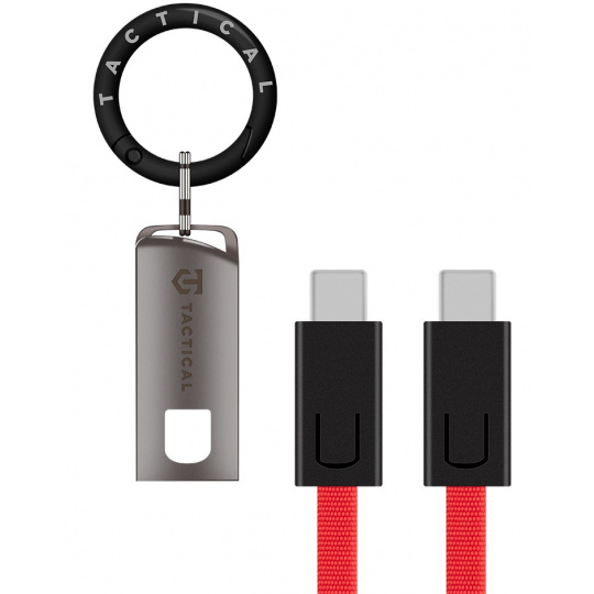 Tactical OODA Loop Cable USB-C/USB-C Red EDC rychlonabíjecí kabel s karabinou pro každodenní použití. Disponuje výkonem až 60W a je určen k napájení telefonu, tabletu i notebooku. Opleten odolným nylonem a osazen zavíracím krytem ze slitiny hliníku, který pevně drží a chrání konektory. Připraven do akce, otestován dle normy MIL-STD. Specifikace: Výkon: až 60W Materiál pouzdra: Hliník Vojenská norma MIL-STD-810H 516.8: Splněna Barva: Červená Značka: Tactical Záruka: 2 roky