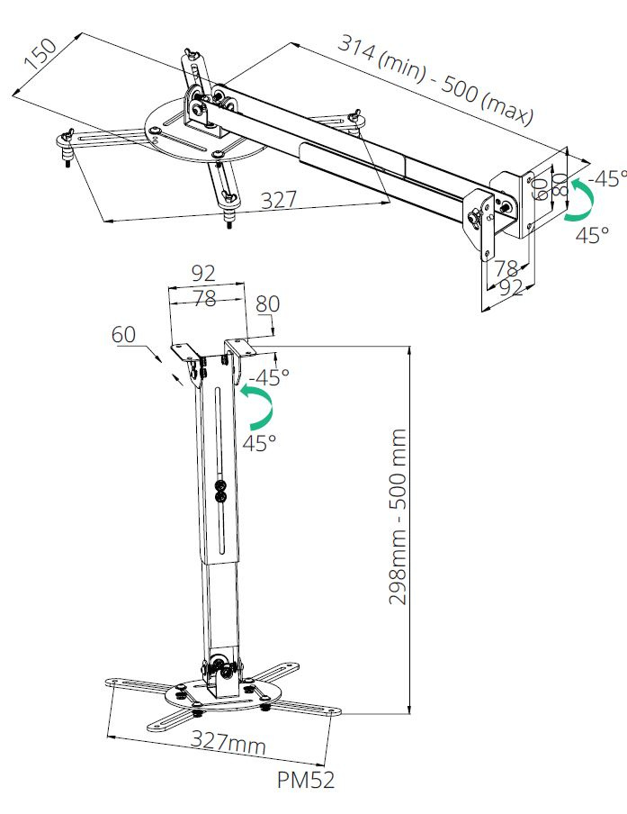 TB Projector mount 2in1 TB-M52 ceiling/wall 10kg