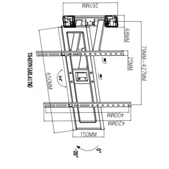 TB TV wall mount 37-70", 35kg, max VESA 600x400