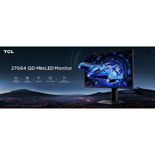 TCL 27G64 27" HVA 2560x1440/1ms/600 nits/5000:1/180Hz/2xHDMI/DP/VESA/High Adjustable/Tilt/Swivel/Low Blue Light/FreeSync