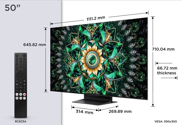 Televize – Google TV, Mini LED, 127cm, 4K Ultra HD, 100/120 Hz (144 Hz – herní režim), HDR10+, Dolby Vision, lokální stmívání, antireflexní obraz, DVB-T2/S2/C, 4× HDMI, 1× USB, LAN, WiFi, Bluetooth, DLNA, Chromecast, Miracast, HbbTV 2.0.3, herní režim, hlasové ovládaní, Google Assistant, Apple Airplay 2, párování s mobilním zařízením, Oneplay, VESA 300×300, repro 30 W, DTS:X, Dolby Atmos, Prostorový zvuk, energetická třída F