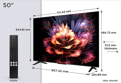 Televize – Google TV, LED, 127cm, 4K Ultra HD, 50/60 Hz, HDR10, antireflexní obraz, DVB-T2/S2/C, 3× HDMI, 1× USB, LAN, WiFi, Bluetooth, DLNA, Chromecast, Miracast, HbbTV 2.0.3, herní režim, hlasové ovládaní, Google Assistant, Apple Airplay 2, párování s mobilním zařízením, Oneplay, VESA 200×200, repro 20 W, Dolby Audio, Prostorový zvuk, Dolby Digital Plus, energetická třída E
