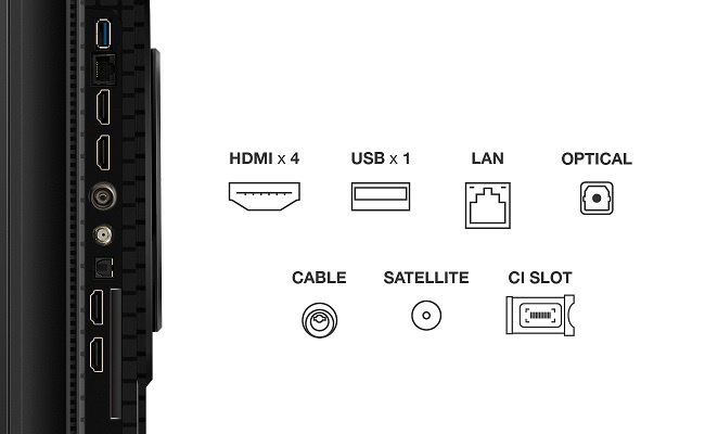 Televize – Google TV, QLED, 165cm, 4K Ultra HD, 100/120 Hz (144 Hz – herní režim), HDR10+, Dolby Vision, antireflexní obraz, DVB-T2/S2/C, 4× HDMI, 1× USB, LAN, WiFi, Bluetooth, DLNA, Chromecast, Miracast, HbbTV 2.0.3, herní režim, hlasové ovládaní, Google Assistant, Apple Airplay 2, párování s mobilním zařízením, Oneplay, VESA 400×300, repro 35 W, DTS:X, DTS Virtual:X, Dolby Atmos, Prostorový zvuk, vestavěný subwoofer, energetická třída F