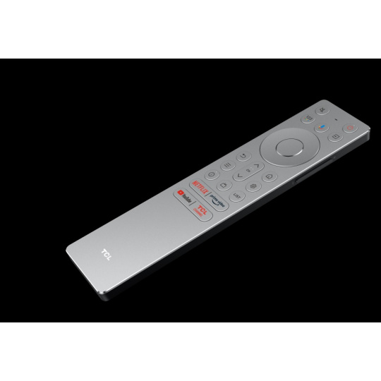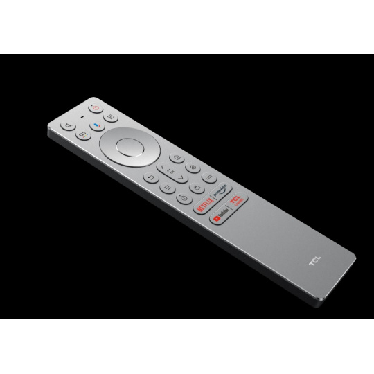 Představujeme vám chytrý dálkový ovladač RC933 od značky TCL, určený pro televize TCL se systémy Android/Google TV. Tento ovladač nabízí možnost hlasového ovládání díky vestavěnému mikrofonu, což výrazně usnadňuje vyhledávání obsahu oproti běžnému psaní. Stačí se jednoduše zeptat na cokoliv, co vás napadne. Chytrý dálkový ovladač TCL RC933 je velmi kompaktní a má luxusní kovové provedení. Kompaktní design znamená méně tlačítek, avšak všechna potřebná tlačítka jsou k dispozici prostřednictvím virtuální klávesnice na obrazovce, kde lze vybírat veškeré funkce, které fyzicky na ovladači nejsou.