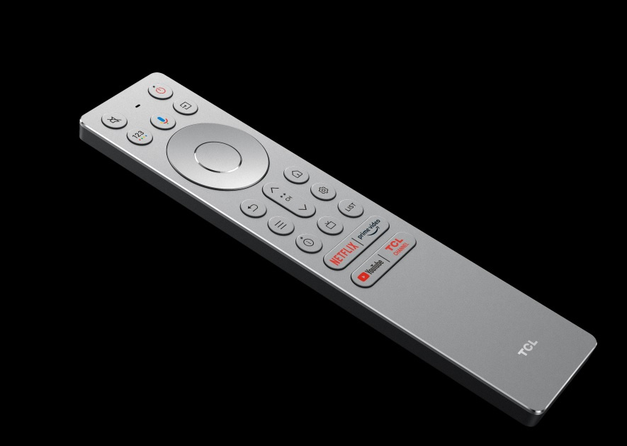 Představujeme vám chytrý dálkový ovladač RC933 od značky TCL, určený pro televize TCL se systémy Android/Google TV. Tento ovladač nabízí možnost hlasového ovládání díky vestavěnému mikrofonu, což výrazně usnadňuje vyhledávání obsahu oproti běžnému psaní. Stačí se jednoduše zeptat na cokoliv, co vás napadne. Chytrý dálkový ovladač TCL RC933 je velmi kompaktní a má luxusní kovové provedení. Kompaktní design znamená méně tlačítek, avšak všechna potřebná tlačítka jsou k dispozici prostřednictvím virtuální klávesnice na obrazovce, kde lze vybírat veškeré funkce, které fyzicky na ovladači nejsou.