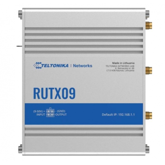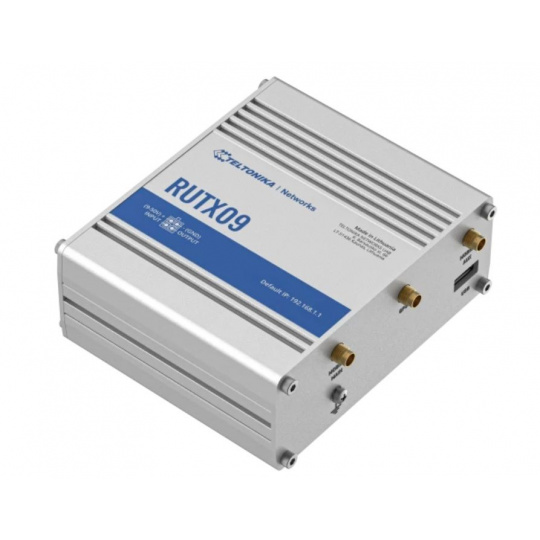 RUTX09 je LTE-A Cat 6 celulární IoT router s dual-SIM, agregací operátorů a čtyřmi gigabitovými ethernetovými rozhraními. Je navržen jako primární nebo záložní zdroj internetu a může nabídnout mobilní rychlost až 300 Mb/s s vysokou datovou propustností.