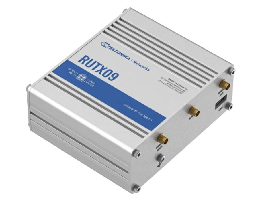 RUTX09 je LTE-A Cat 6 celulární IoT router s dual-SIM, agregací operátorů a čtyřmi gigabitovými ethernetovými rozhraními. Je navržen jako primární nebo záložní zdroj internetu a může nabídnout mobilní rychlost až 300 Mb/s s vysokou datovou propustností.