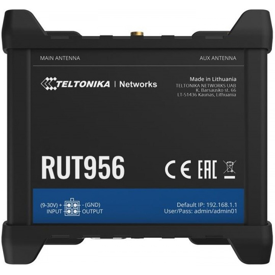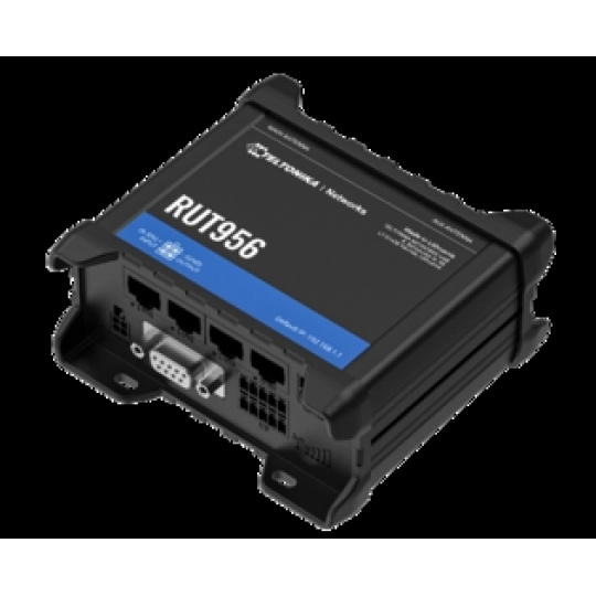 Teltonika RUT956 je průmyslový směrovač, který kombinuje možnosti mobilního, Wi-Fi a kabelového připojení s automatickým přepojením WAN a funkcemi GNSS. Sériová komunikační rozhraní umožňují integrovat do ekosystému řešení více různých zařízení, zatímco I/O a pokročilý software RutOS usnadňují ovládání zařízení, automatizaci a upozorňování na události.