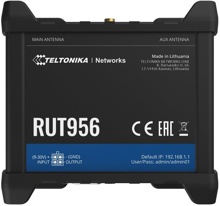 Teltonika RUT956 je průmyslový směrovač, který kombinuje možnosti mobilního, Wi-Fi a kabelového připojení s automatickým přepojením WAN a funkcemi GNSS. Sériová komunikační rozhraní umožňují integrovat do ekosystému řešení více různých zařízení, zatímco I/O a pokročilý software RutOS usnadňují ovládání zařízení, automatizaci a upozorňování na události.