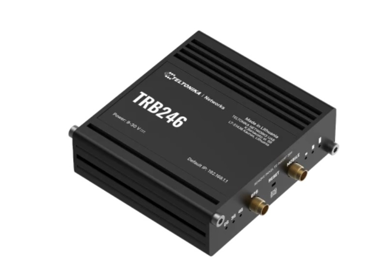 TRB246 je průmyslová 4G LTE brána vybavená I/O, RS232, RS485 a ethernetovými rozhraními pro IoT řešení vyžadující všestrannost a spolehlivou podporu M2M komunikace. Tato brána má funkci dual SIM a podporuje více protokolů, jako jsou DNP3, DLMS a Modbus, které jsou nezbytné pro zajištění plynulého přenosu dat. Tato průmyslová brána IoT je uzavřena v hliníkovém pouzdře a dokáže tolerovat extrémní podmínky prostředí ve výrobě, zemědělství nebo stavebnictví.