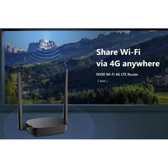 Tenda 4G05 Wi-Fi N300 4G / 3G LTE router, 2x WAN/LAN, 1x nanoSIM, IPv6, VPN, LTE Cat.4, CZ App