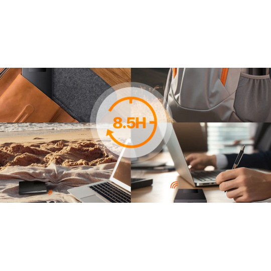 - Vnitřní baterie o kapacitě 2100 mAh pro výdrž až 8,5 hodin provozu,